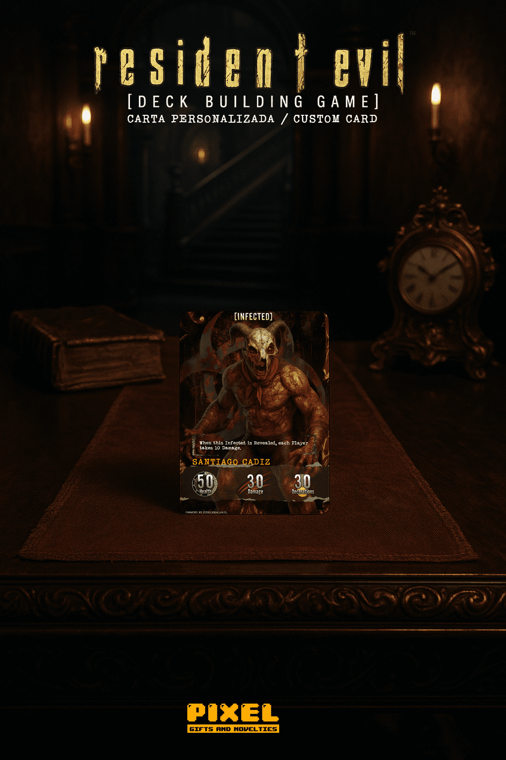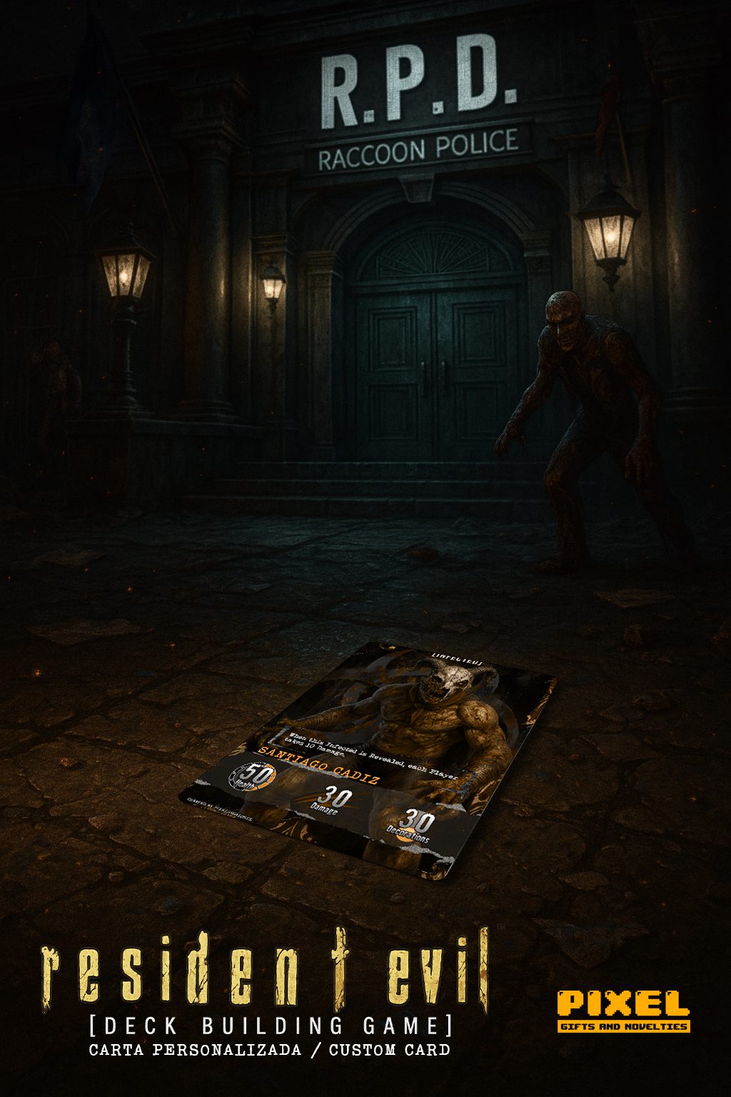 Diseña tu héroe o villano favorito del universo Resident Evil y conviértelo en una carta personalizada única, solo disponible en Pixel Regalos. Ideal para jugadores del Resident Evil Deck Building Game (DBG) y coleccionistas fanáticos de la saga.