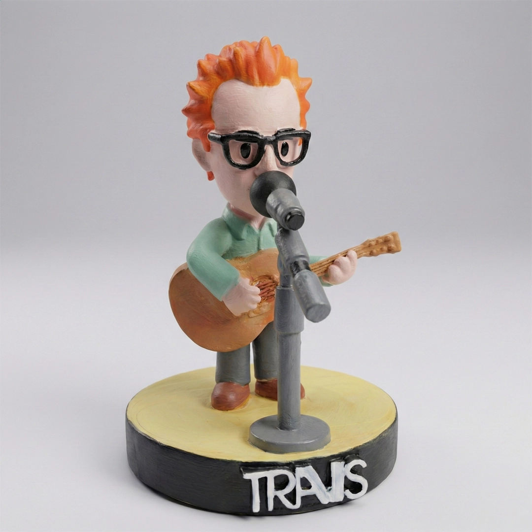 🎨 Arte y Exclusividad Cada pieza ha sido impresa en 3D en alta resolución y pintada a mano, garantizando que cada Fran Healy tenga un toque único y artesanal.