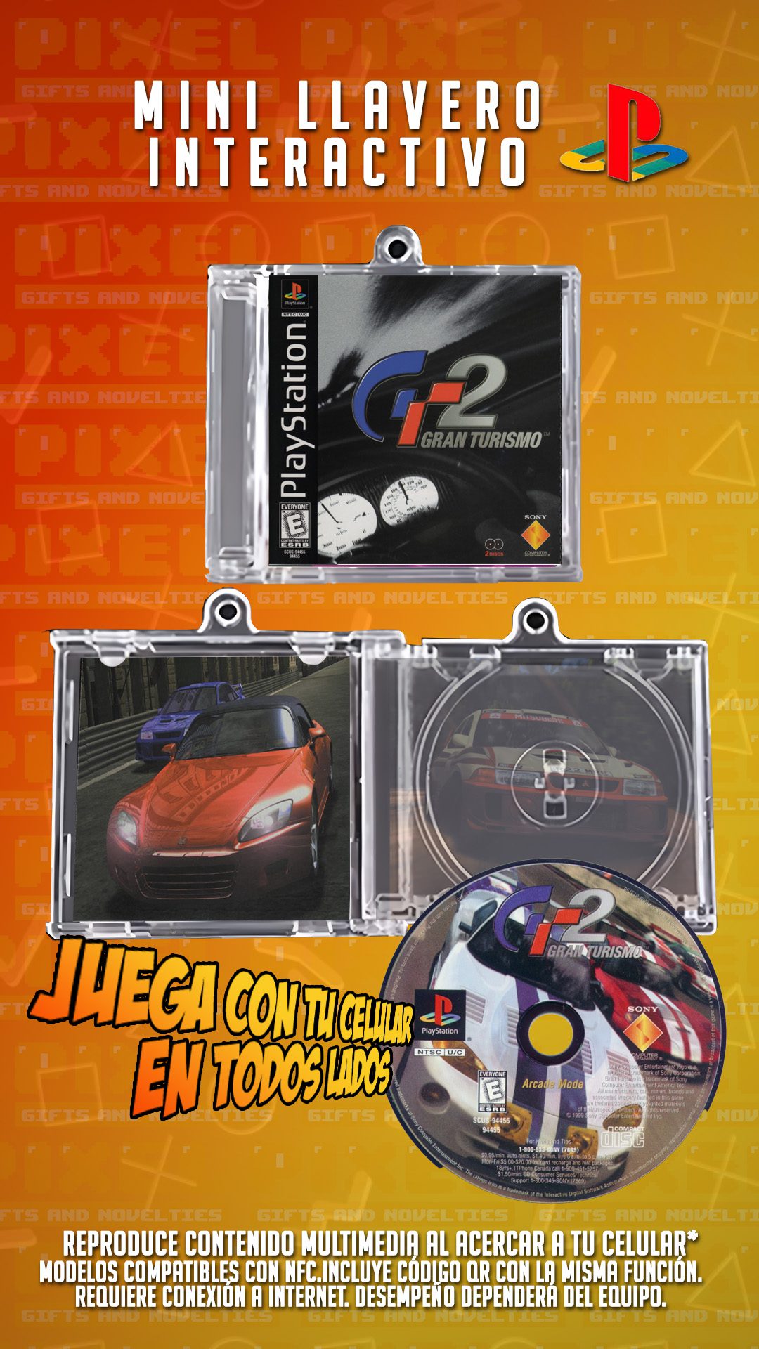 Este mini CD interactivo en forma de llavero te permite jugar Gran Turismo 2, el clásico de PlayStation 1, directamente desde tu celular. ¡Solo acércalo y disfruta!