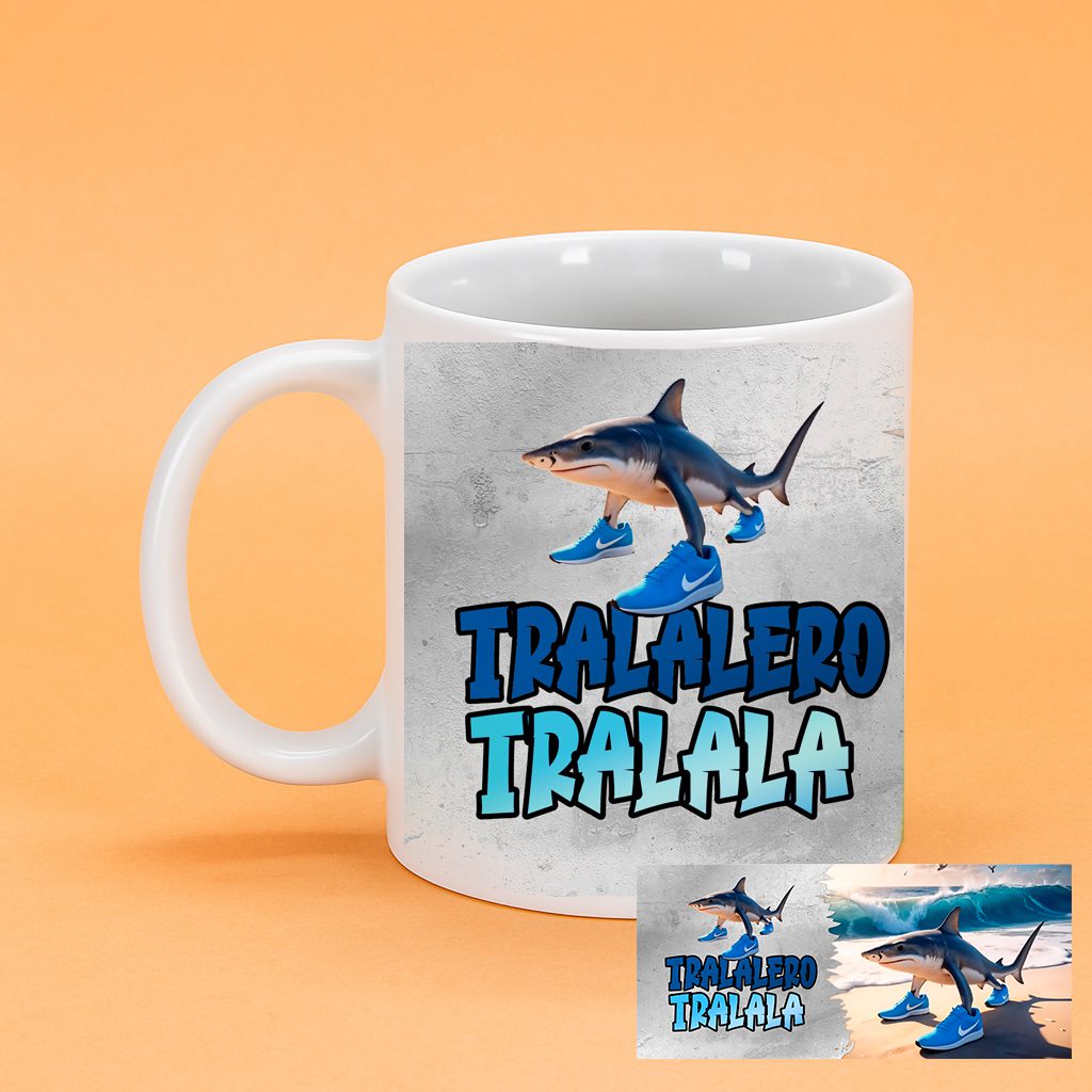 Con un tiburón caminando en zapatillas y la frase “Tralalero Tralala”, este tazón es perfecto para quienes disfrutan del humor absurdo y los diseños originales que se convierten en tema de conversación.